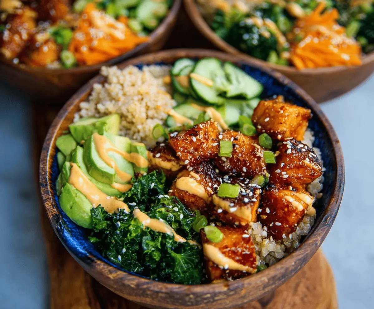 In a small bowl, whisk together the mayonnaise, Sriracha, honey (or sugar), and lime juice until smooth and creamy. This sauce adds the perfect kick to your bowls!