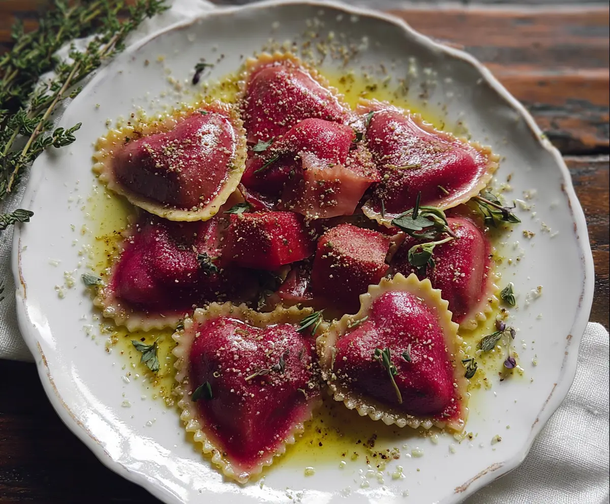 Beet Heart Ravioli is a lovely dish that’s both colorful and tasty! The ravioli are filled with a sweet beet mixture, giving them a beautiful red hue.