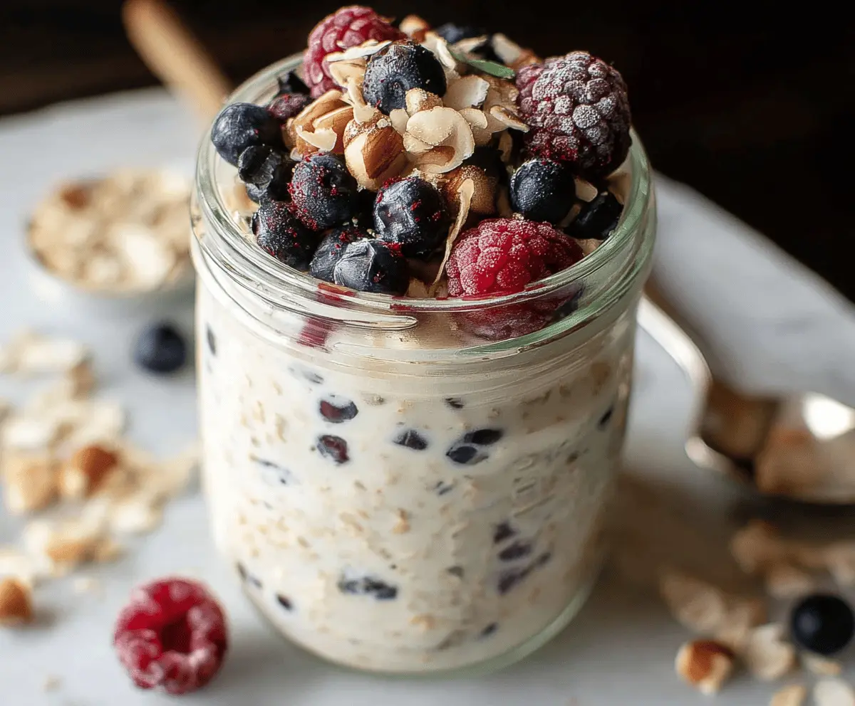 Berry Overnight Oats are a tasty and healthy breakfast option! Just mix oats with yogurt, milk, and a handful of your favorite berries, then let them sit overnight.