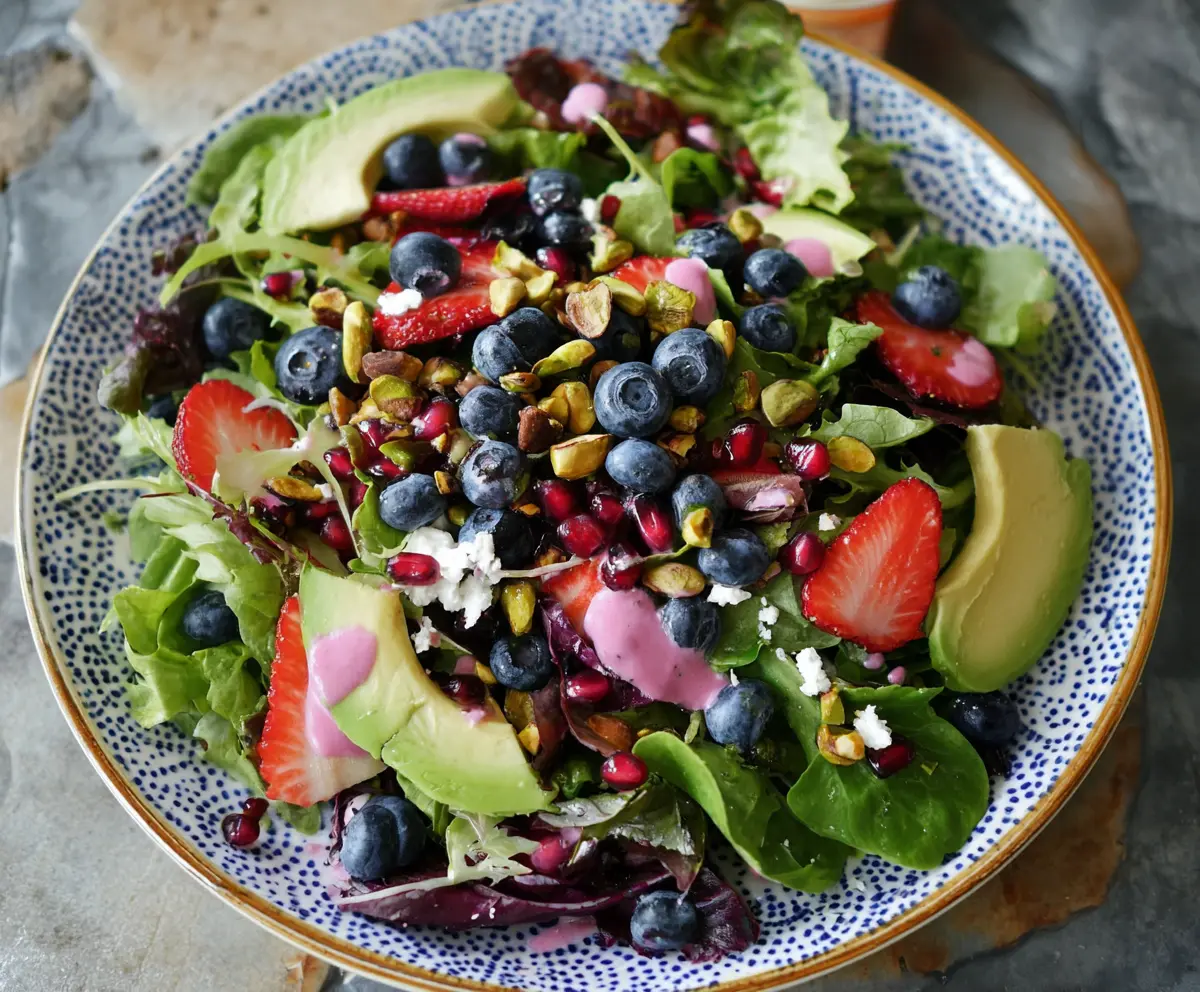 This colorful spring salad is a delightful mix of fresh blueberries and crunchy pistachios. It’s light, healthy, and bursting with flavor, perfect for sunny days!