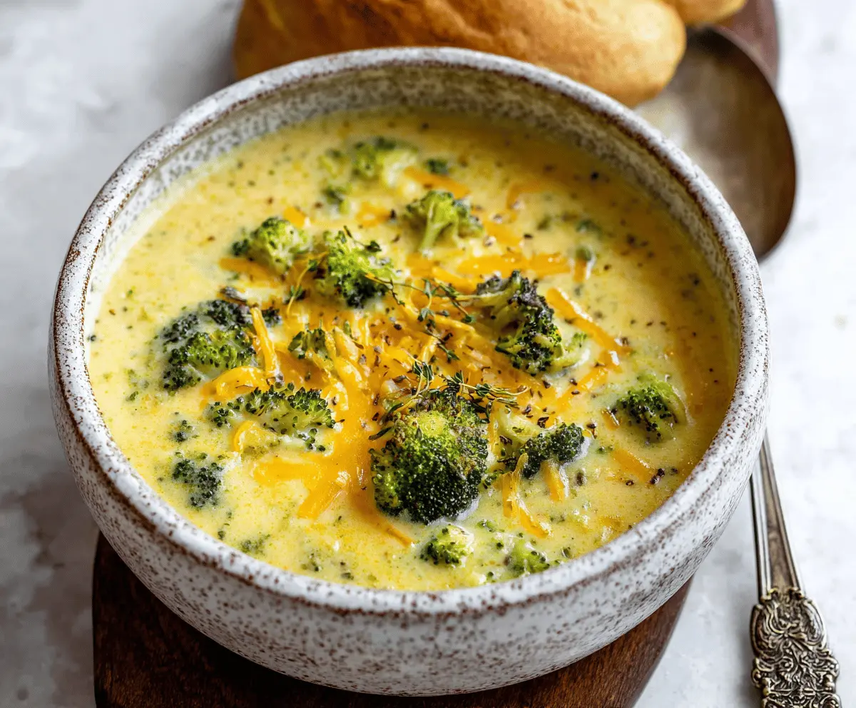 Your creamy, cheesy Broccoli Cheddar Potato Soup is ready to be enjoyed! Perfect for warming up on a chilly day. Enjoy every spoonful!