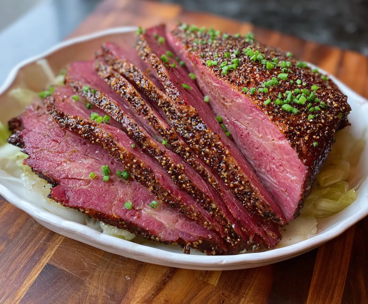 Savory Brown Sugar Dijon Corned Beef Brisket ready to serve with a golden crust.