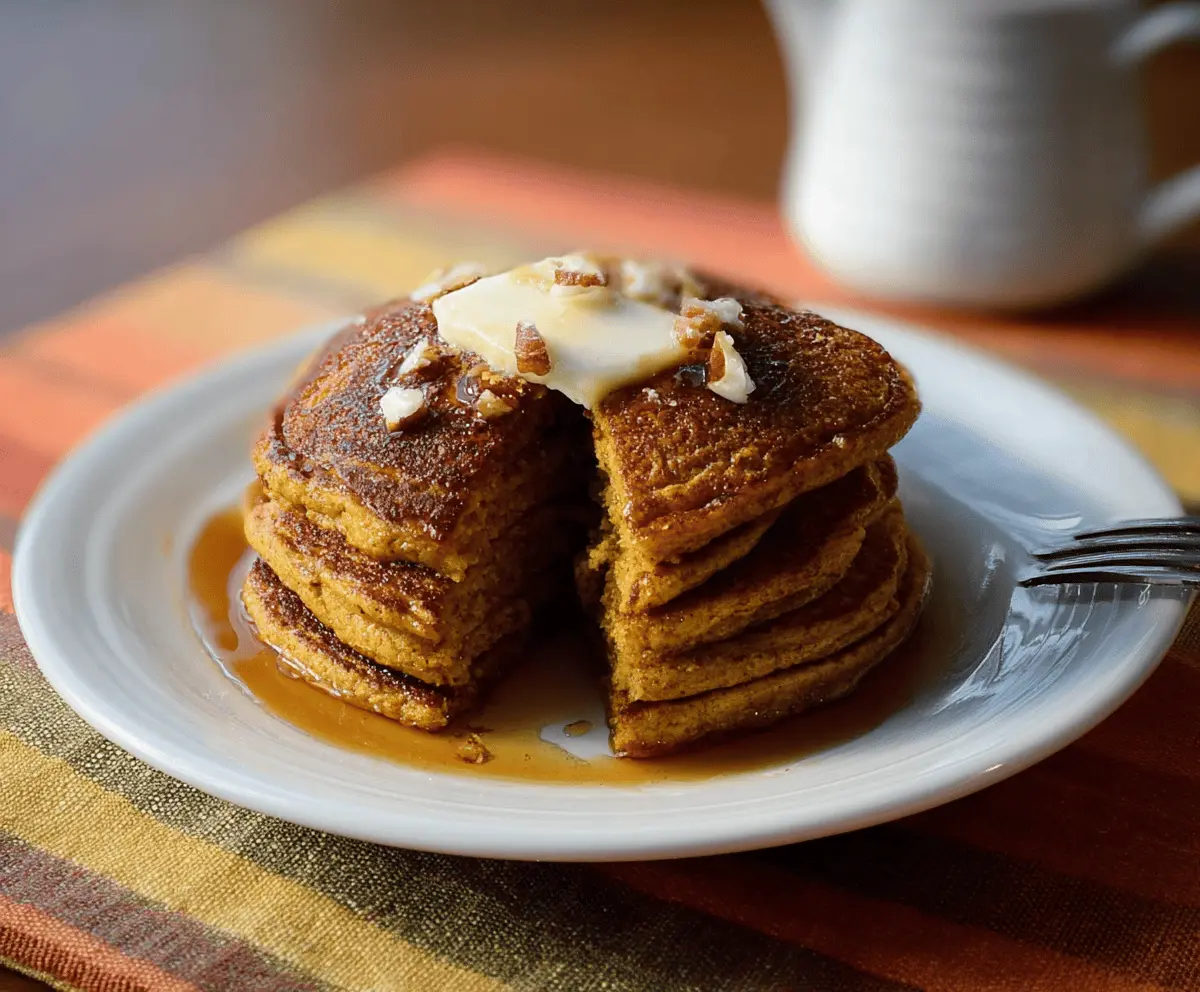 Enjoy your delicious buttermilk pumpkin pancakes fresh off the griddle for the ultimate cozy breakfast experience!