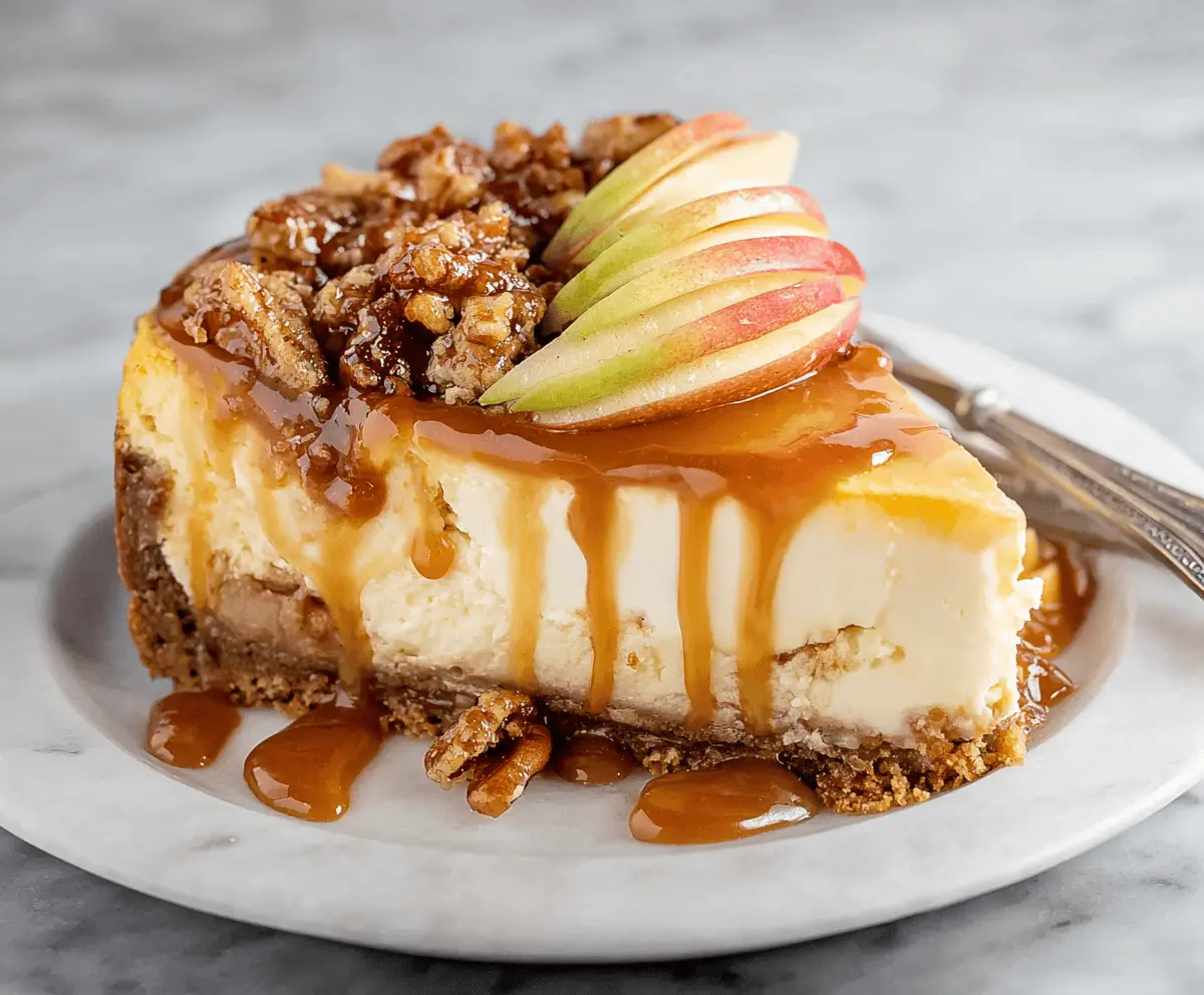 Enjoy your luscious Caramel Apple Cheesecake, celebrating the sweet flavors of fall with every slice!