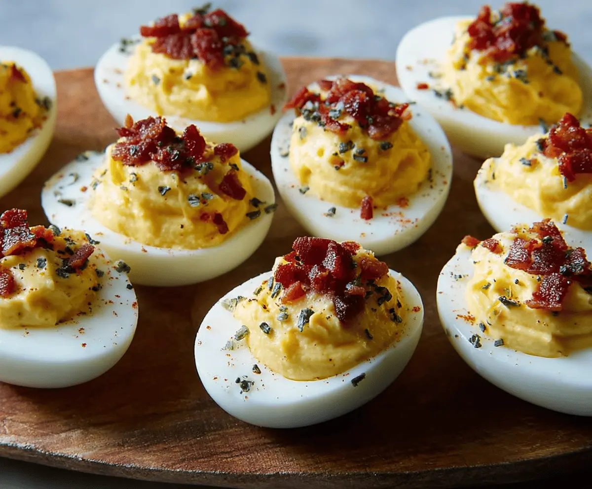 These Carbonara Deviled Eggs are a fun twist on a classic appetizer! With creamy egg yolks mixed with crispy bacon and a hint of cheese, they’re sure to impress your guests.