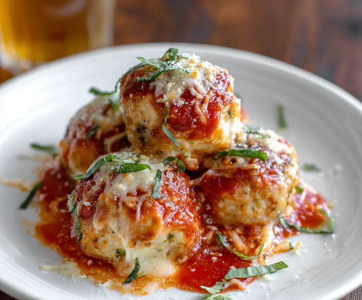 After baking, remove from the oven, garnish with freshly chopped basil, and serve hot. Enjoy your delicious Chicken Parmesan Meatballs as a hearty meal or a scrumptious appetizer!