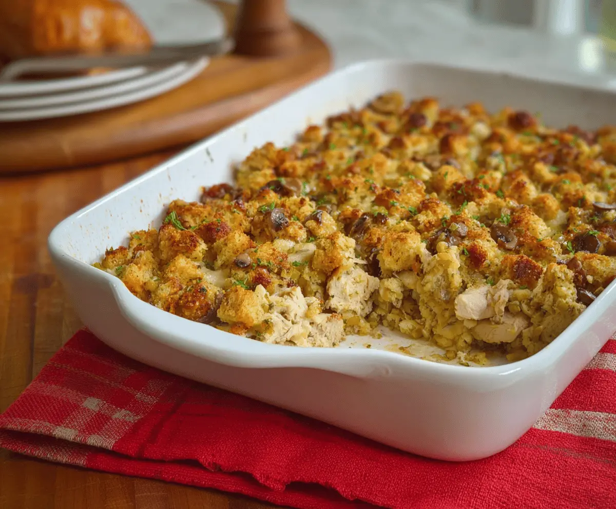 This Chicken & Stuffing Casserole is a cozy dish packed with tender chicken and fluffy stuffing, all baked together in one pan. It’s easy to make and perfect for a family dinner!