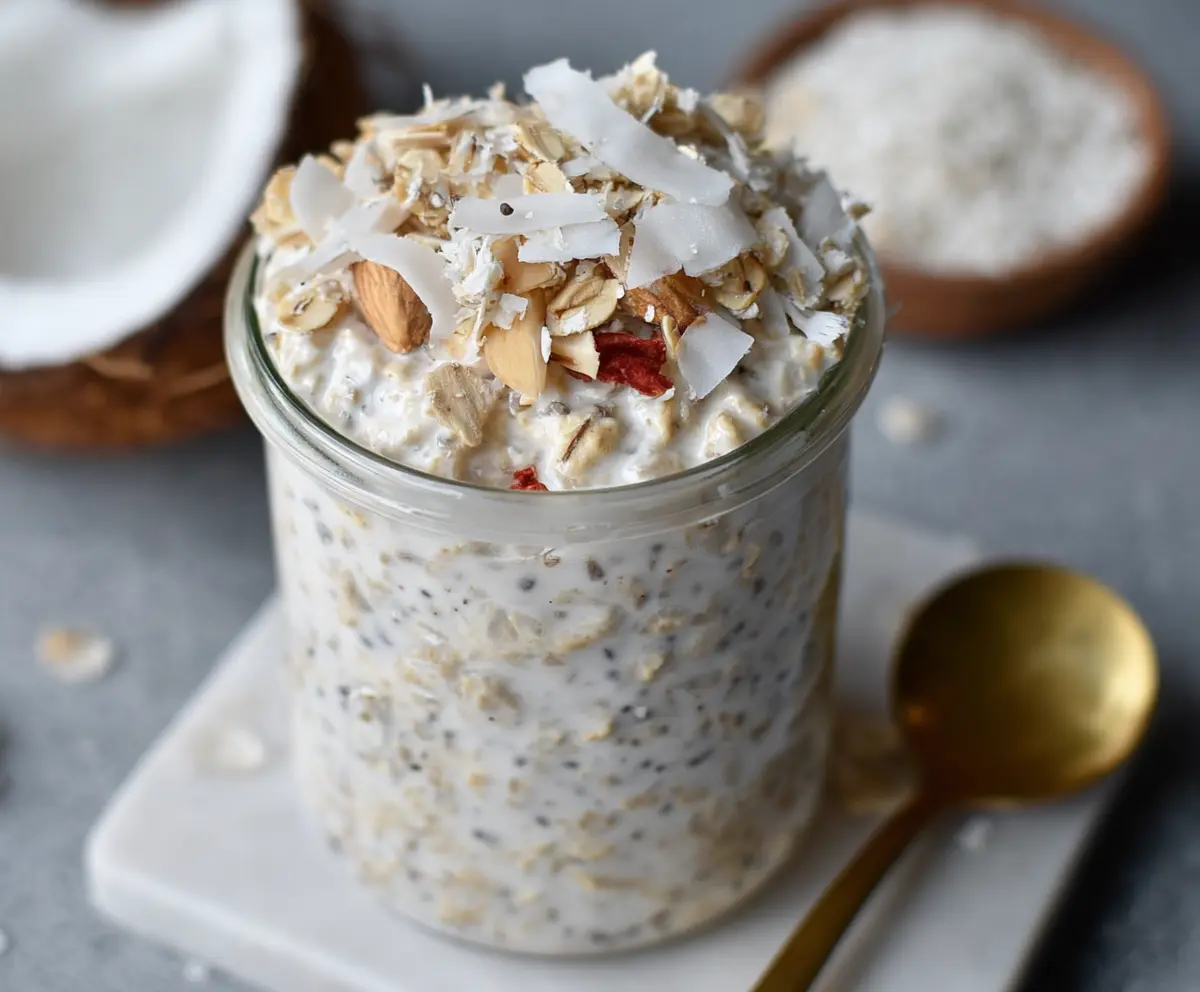 Serve your Coconut Overnight Oats chilled and enjoy a delightful, creamy tropical breakfast! You’ll feel energized and ready to take on the day.