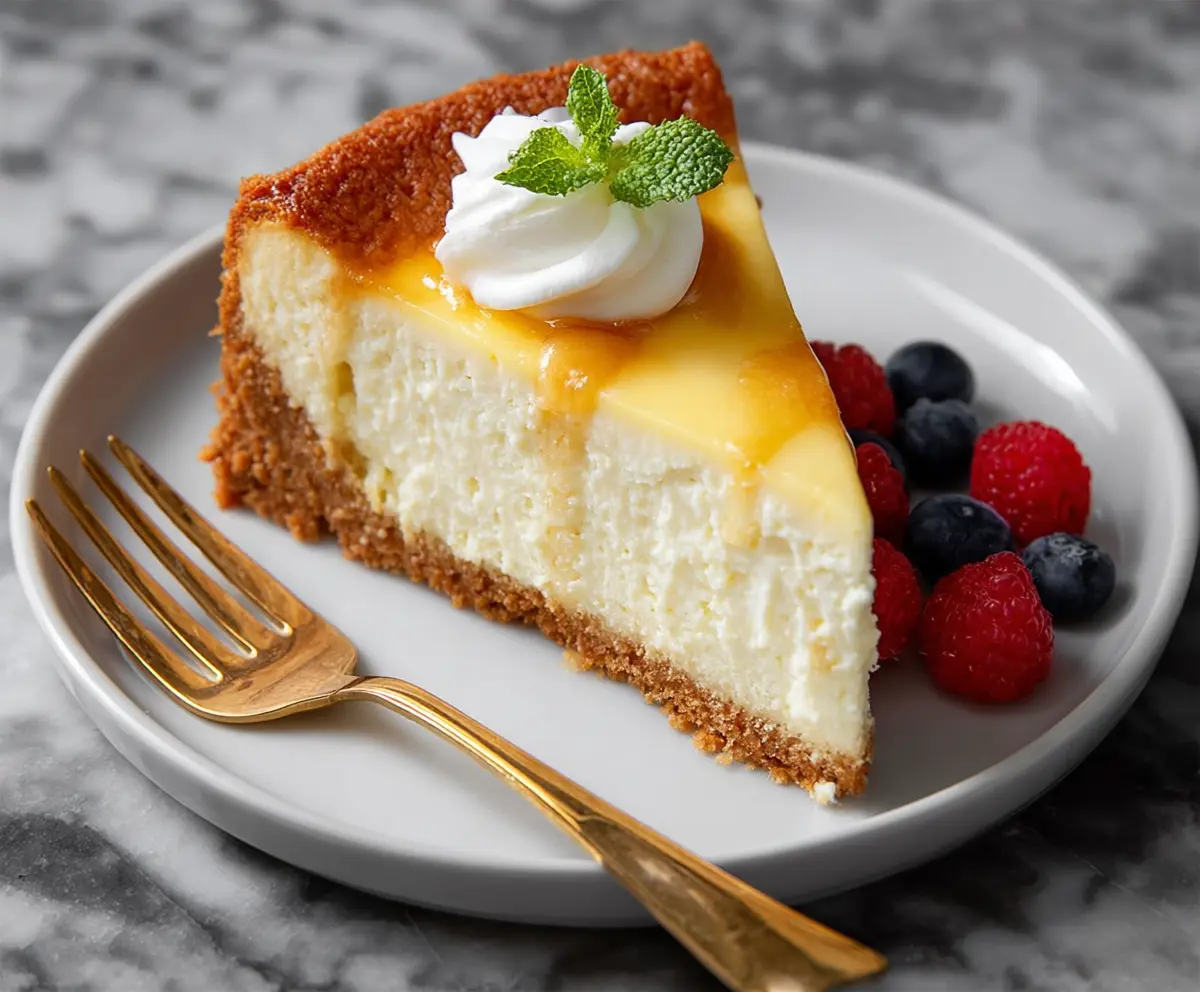 Baking this cheesecake is so easy; just blend the ingredients, pour, and bake! I often top it with fresh fruits for a burst of flavor—because who can resist some berries on top? 🍓