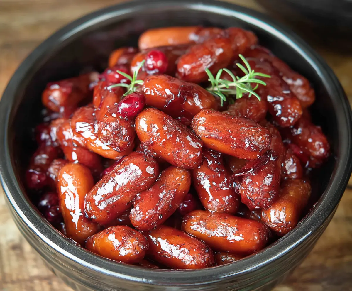 These Cranberry BBQ Little Smokies are small sausages wrapped in a sweet and tangy sauce. Perfect for parties, they pack a delicious punch in every bite!