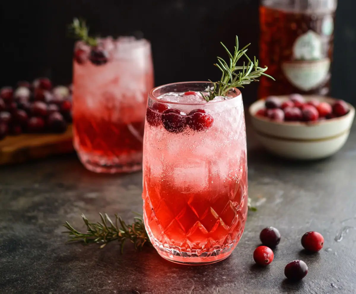 Now for the fun part! Garnish with fresh cranberries skewered on a sprig of rosemary or mint, and add a slice of lime on the rim if you like.