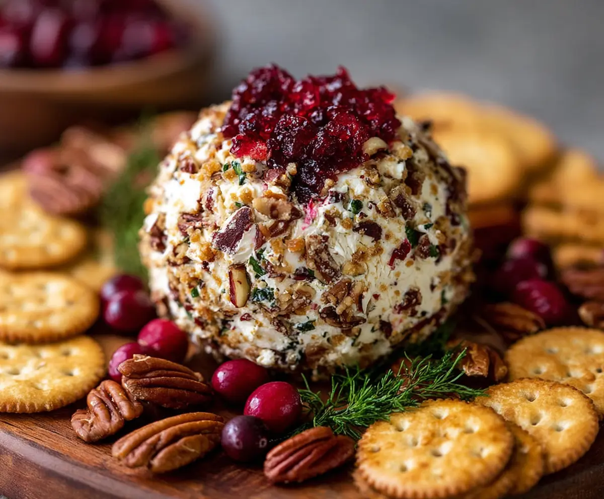 This fun cranberry pecan cheese ball is a tasty blend of creamy cheese, sweet cranberries, and crunchy pecans. It’s perfect for parties or just as a snack!