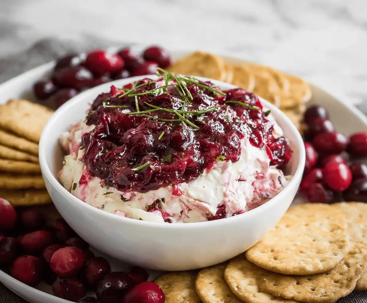 This Cream Cheese Cranberry Dip is a tasty mix of creamy goodness and sweet tartness. Perfect for spreading on crackers or to enjoy with fresh fruit!