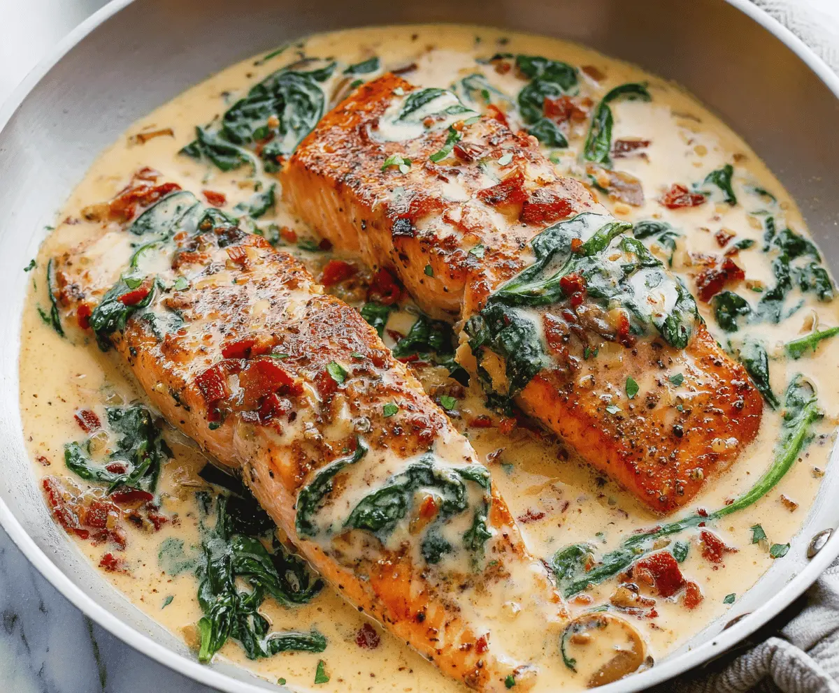 This Creamy Garlic Tuscan Salmon is a delightful meal, perfect for a cozy dinner or an evening with friends. Enjoy the rich flavors that come together in this wonderful dish!