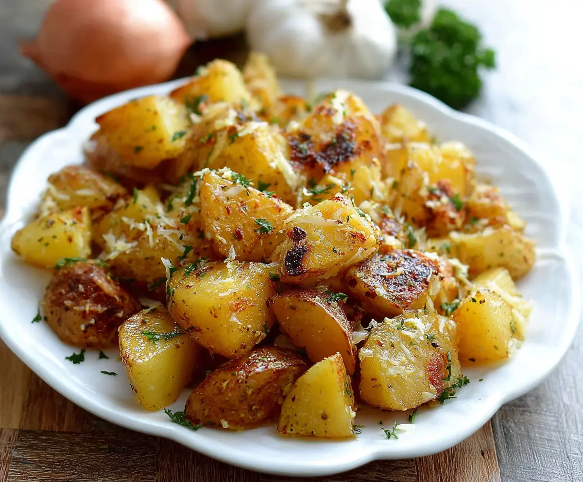 Once the potatoes are roasted to perfection, remove them from the oven. Sprinkle them with fresh or dried parsley for a pop of color and flavor, and add grated Parmesan cheese on top if you like. Yum!