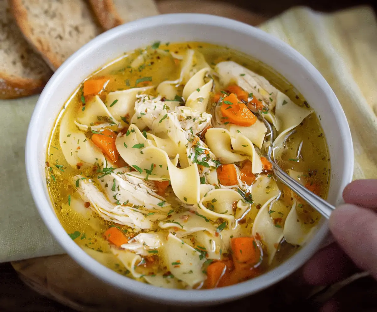 This warm and comforting chicken noodle soup is like a hug in a bowl! With tender chicken, hearty noodles, and tasty veggies, it’s perfect for chilly days or when you’re feeling under the weather.