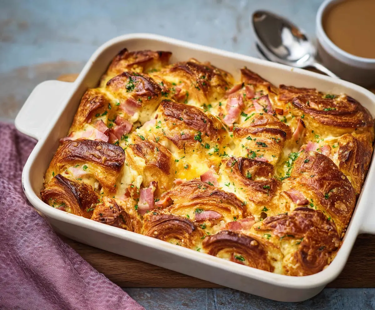 This Ham and Cheese Croissant Brunch Bake is a warm, cheesy delight that brings together flaky croissants and savory ham. Perfect for feeding a crowd!
