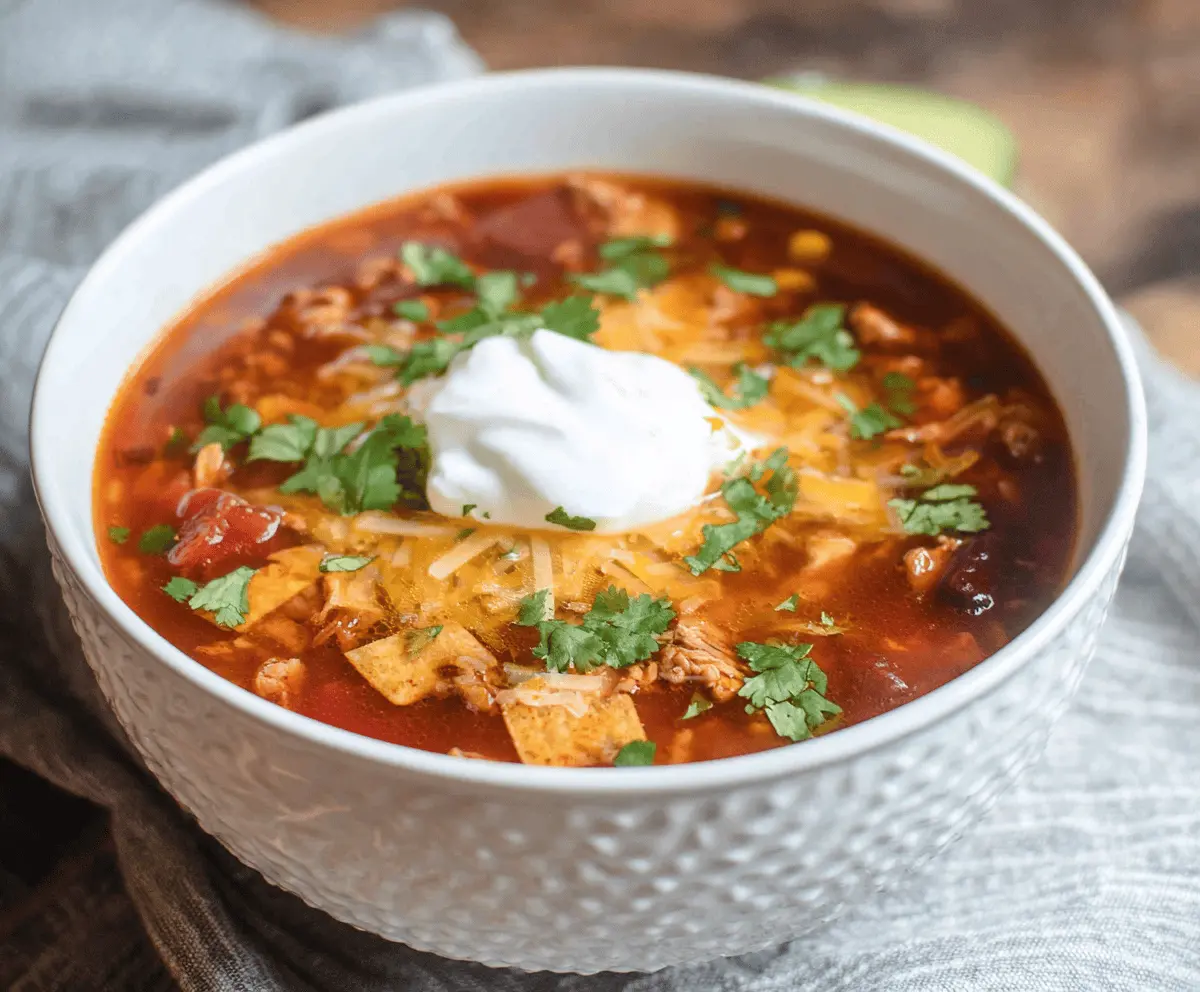 Ladle the soup into bowls and top with your favorite toppings: shredded cheddar cheese, a dollop of sour cream, diced avocado, crunchy tortilla chips, and fresh cilantro. The toppings add extra texture and flavor that really make this meal special!