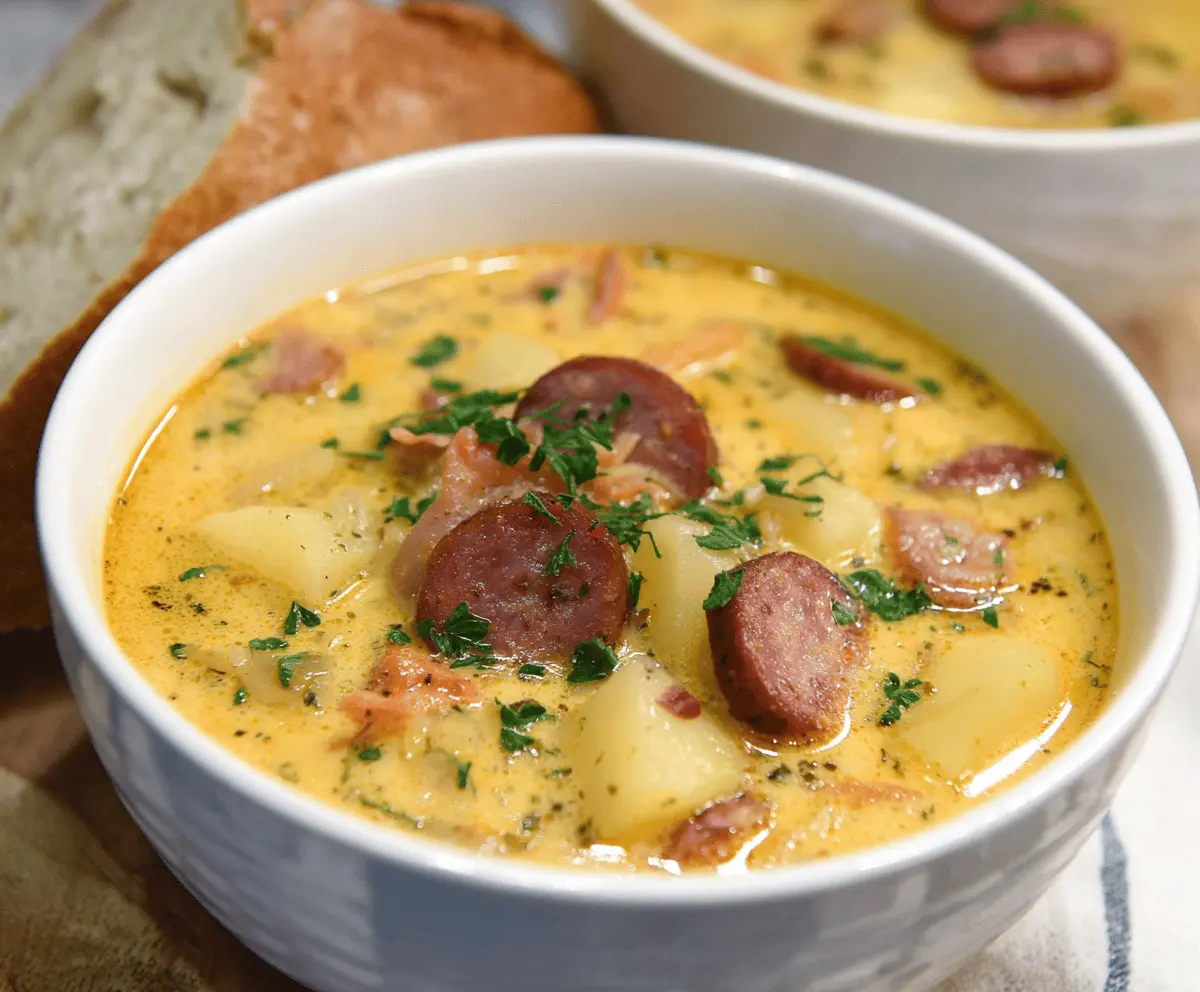 Serve the soup hot, accompanied by some crusty bread for dipping. Enjoy every comforting spoonful of this delicious Kielbasa Potato Soup!