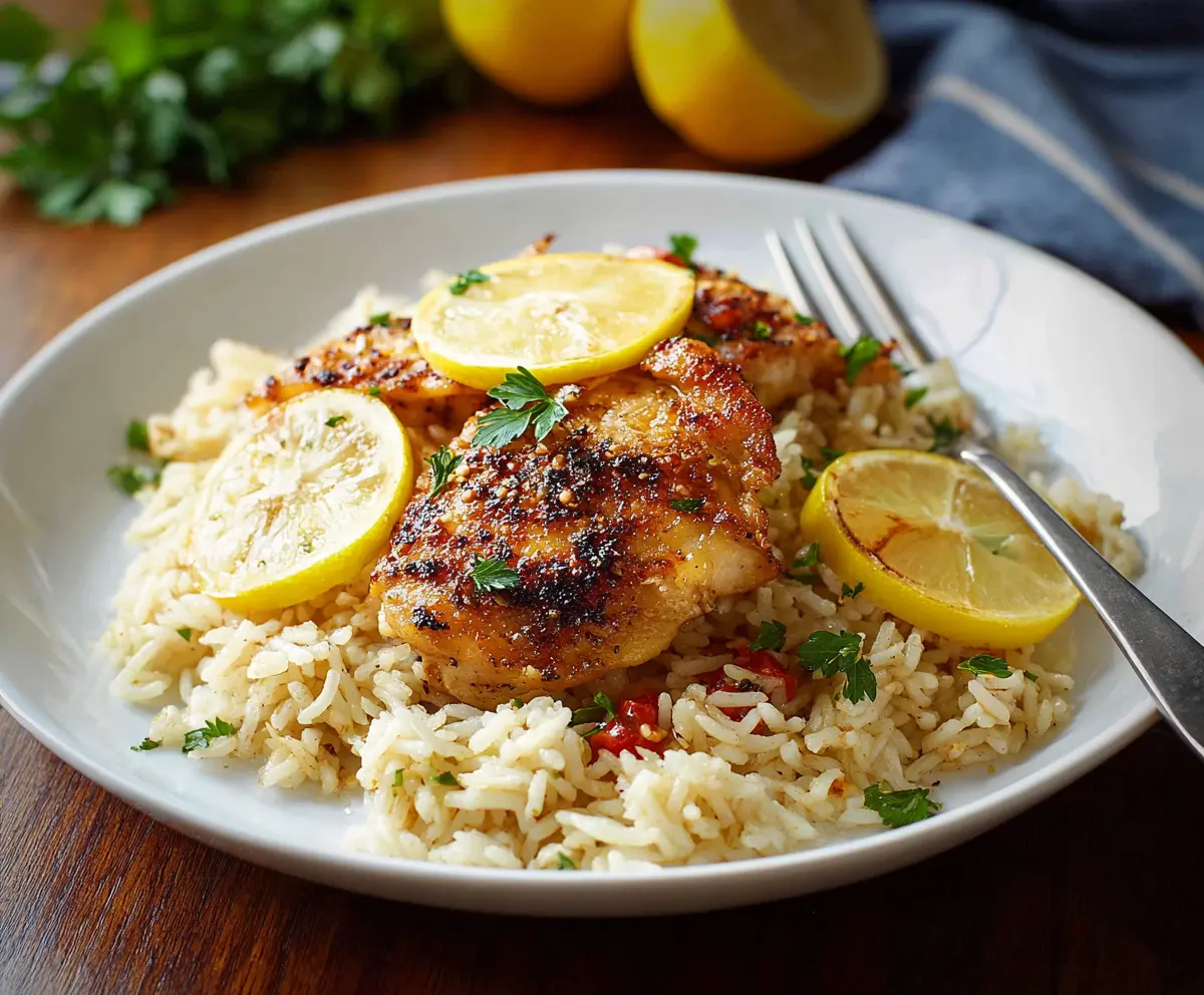 Lemon Chicken and Rice is a bright and zesty dish that brings warmth to your table. Juicy chicken is cooked with fluffy rice and a splash of lemon for a fresh kick!