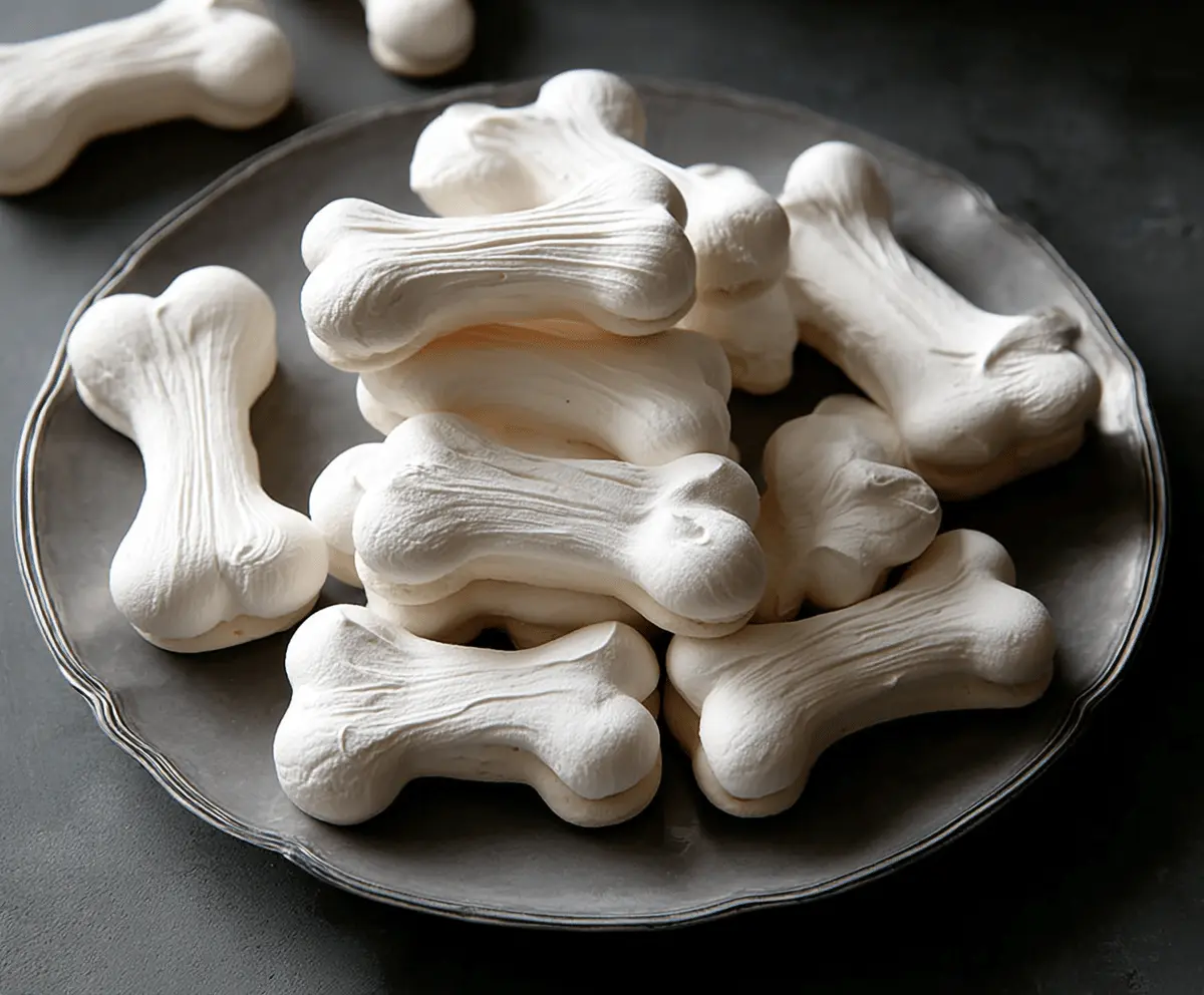 Meringue Bone Cookies are light, crunchy treats that look just like little bones! Made with simple ingredients like egg whites and sugar, they are perfect for Halloween or any spooky occasion.
