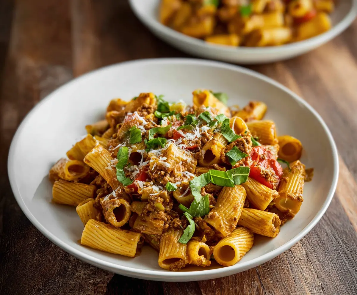 Start by cooking the rigatoni according to the package instructions until it’s al dente, which means it should still have a firm bite. Once done, drain the pasta in a colander and set it aside while you prepare the sauce.