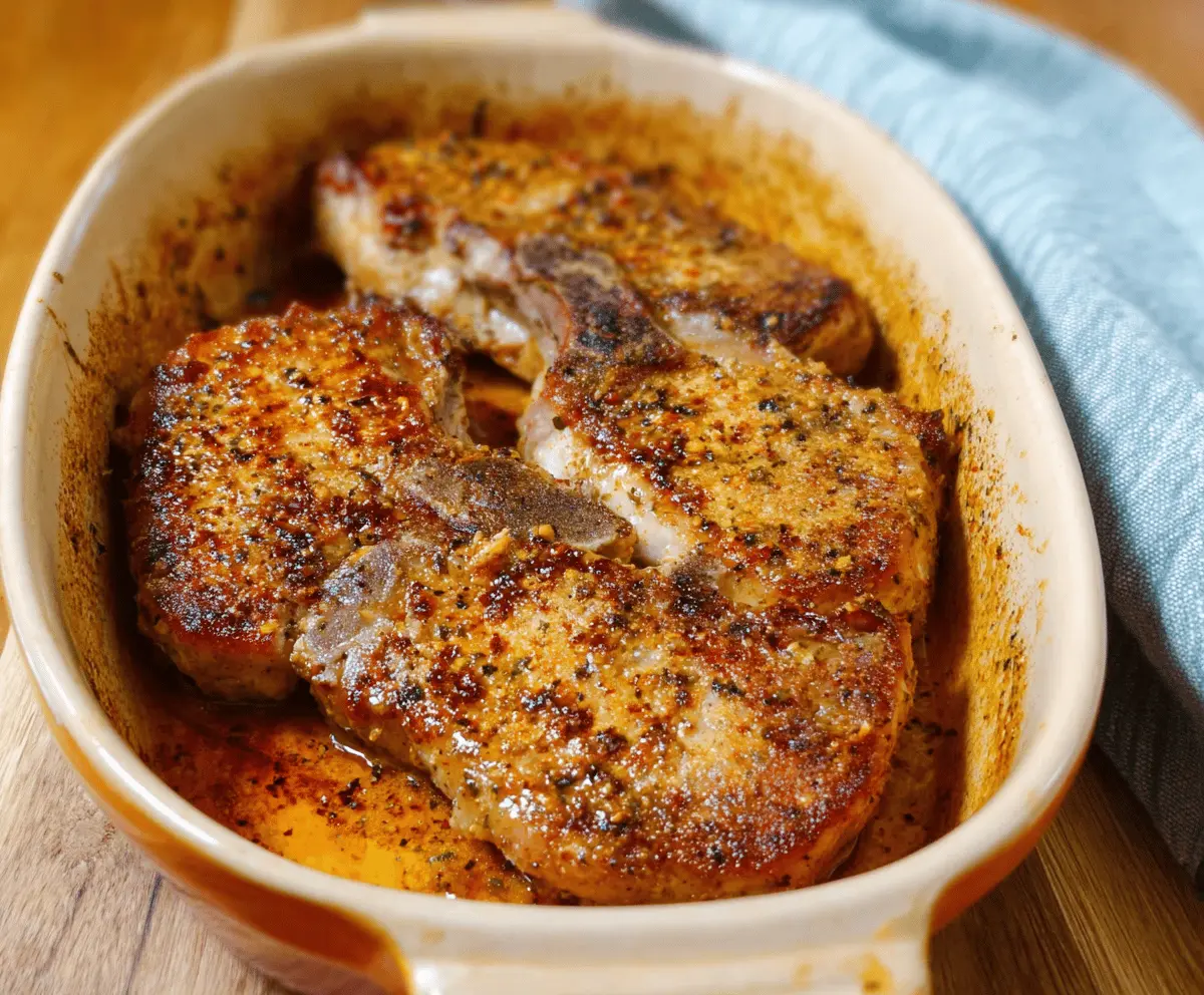 Oven-Baked Pork Chops are juicy and flavorful, making them a family favorite! They bake in the oven with simple spices, creating a deliciously crispy outside.