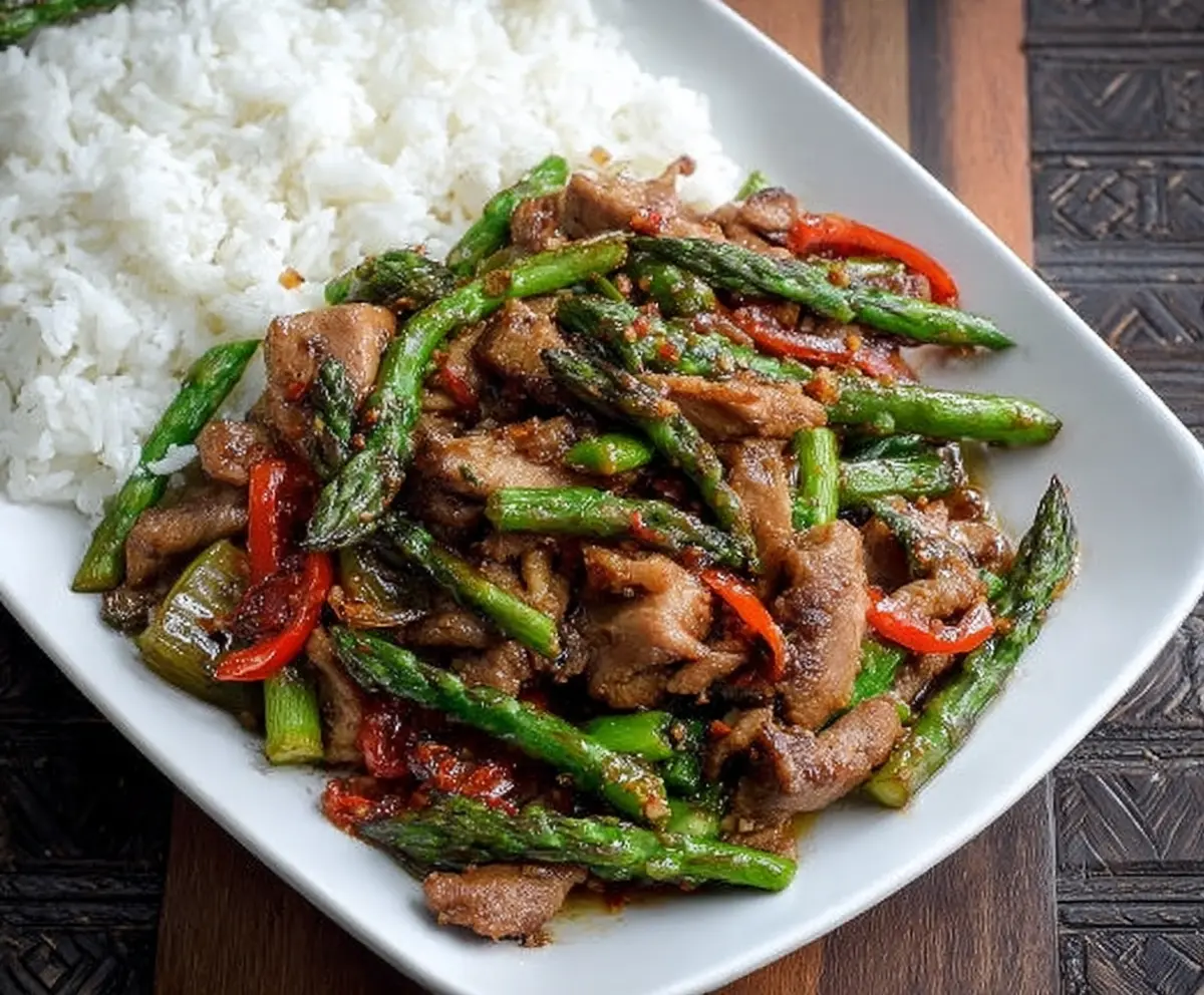 Your Pork and Asparagus Stir Fry is now ready to serve! Plate it hot alongside some steamed white rice for a complete meal. Enjoy this flavorful, healthy dish that’s sure to impress!