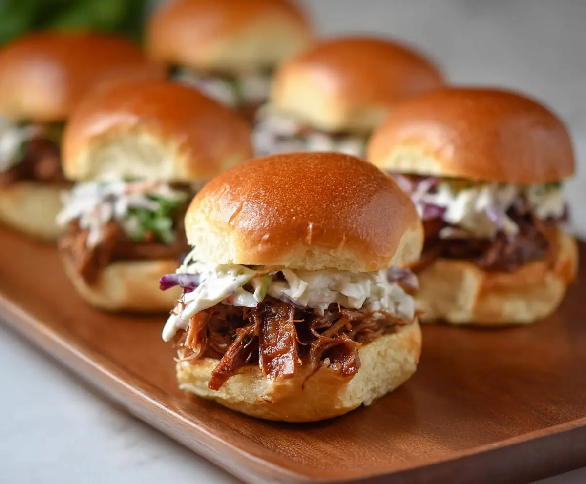 Pulled pork sliders are small sandwiches bursting with flavor! Tender, slow-cooked pork is mixed with a tangy sauce and piled high on soft buns. They are perfect for any occasion!