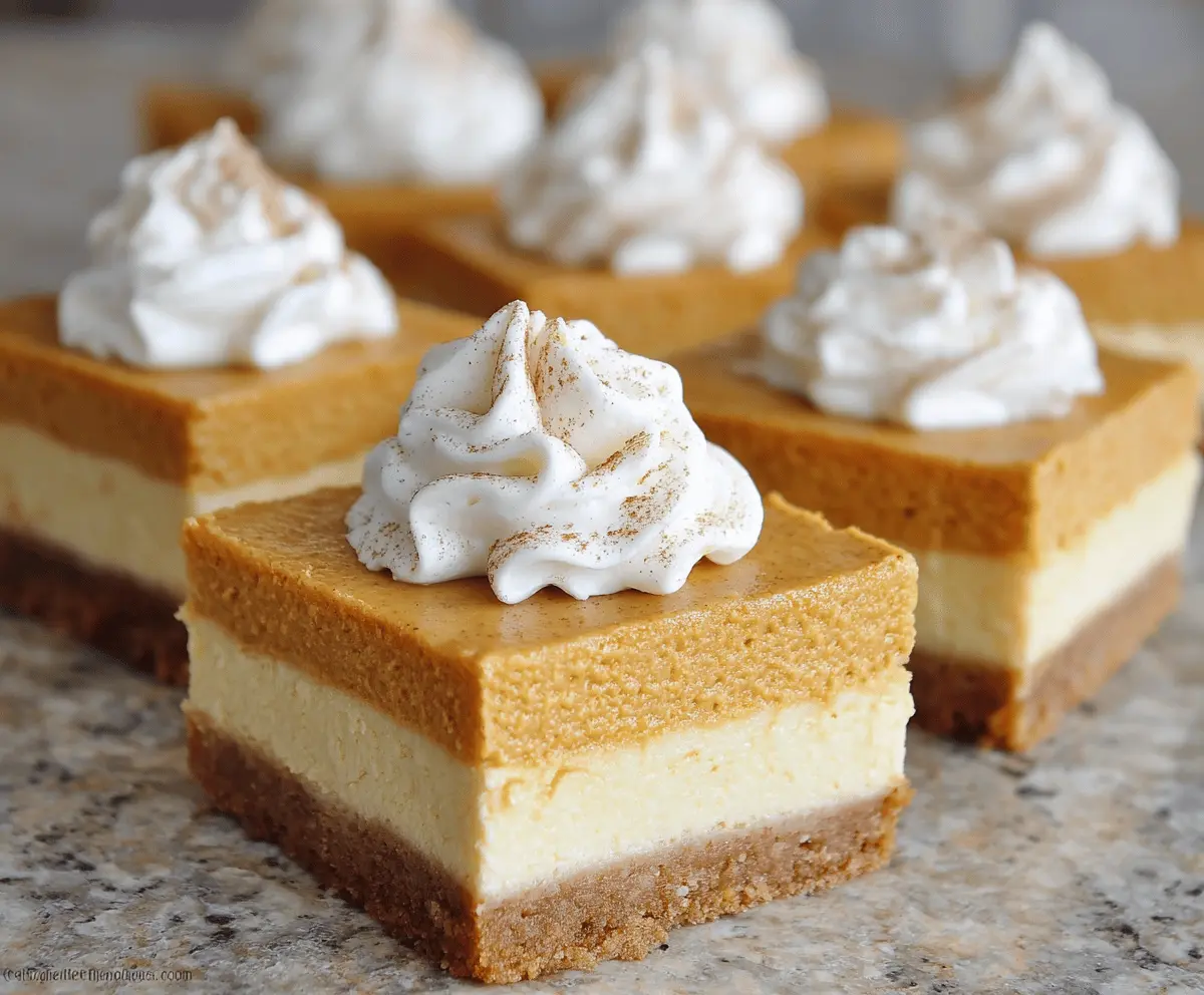 These Pumpkin Cheesecake Bars are a delightful blend of creamy cheesecake and pumpkin spice, resting on a buttery crust. Perfect for fall gatherings or a sweet treat any day!