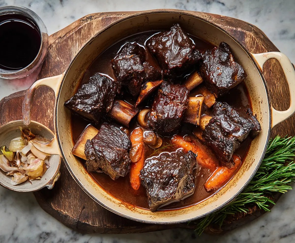 Bring the pot to a gentle simmer on the stovetop, then cover it with a lid and transfer it to the preheated oven. Let it braise for about 2.5 to 3 hours, or until the ribs are fork-tender and practically falling off the bone.