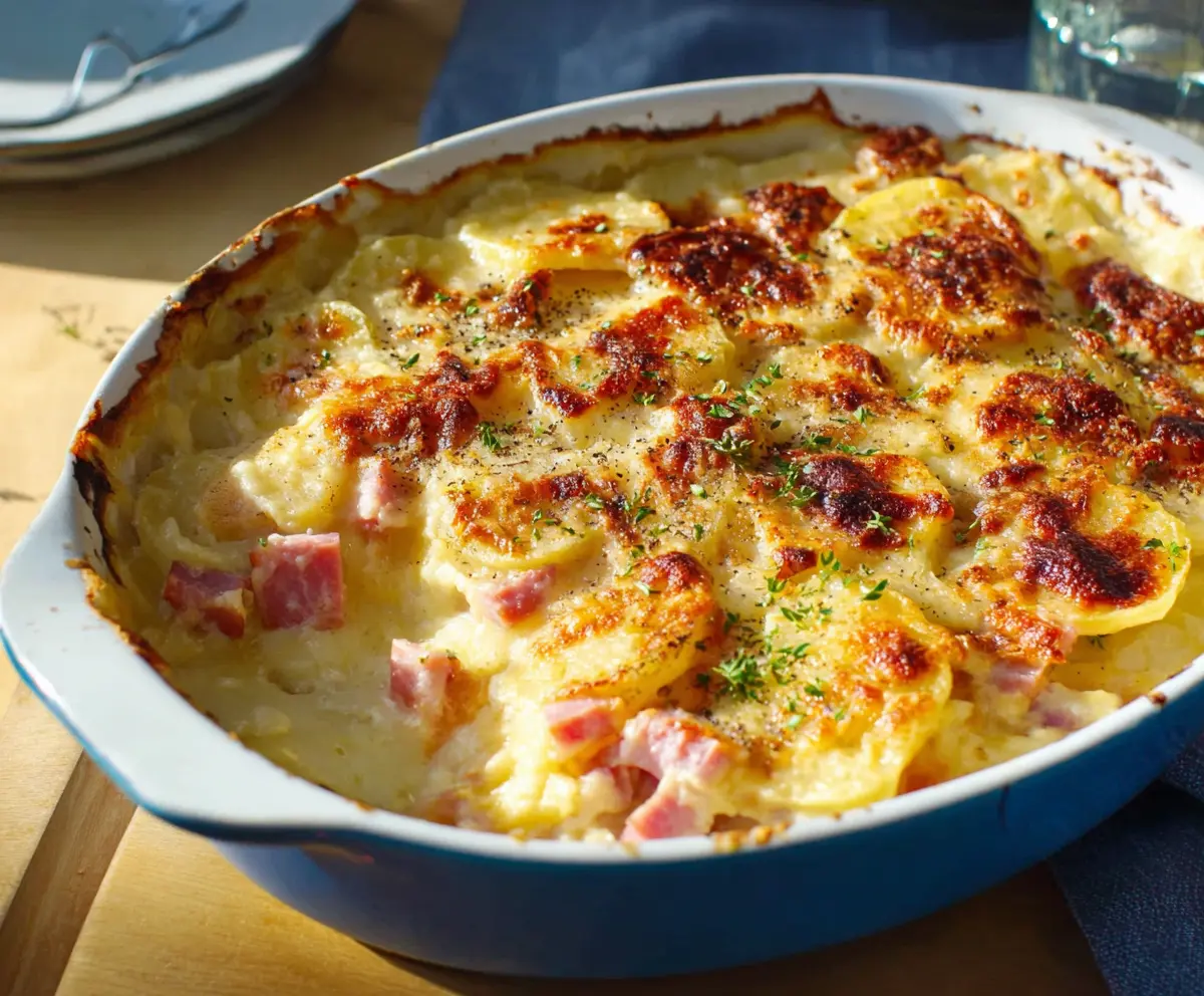 Scalloped potatoes and ham is a warm, creamy dish that’s perfect for family gatherings. Layers of tender potatoes and juicy ham come together with tasty cheese and a rich sauce.