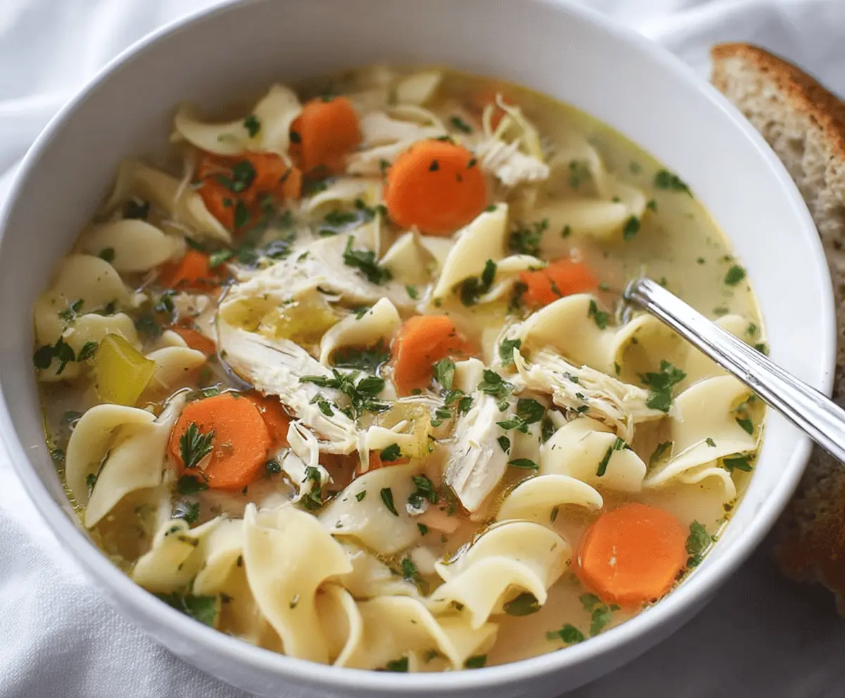 This Slow Cooker Chicken Noodle Soup is warm and comforting, filled with tender chicken, hearty noodles, and fresh veggies. Perfect for a chilly day or anyone feeling under the weather!