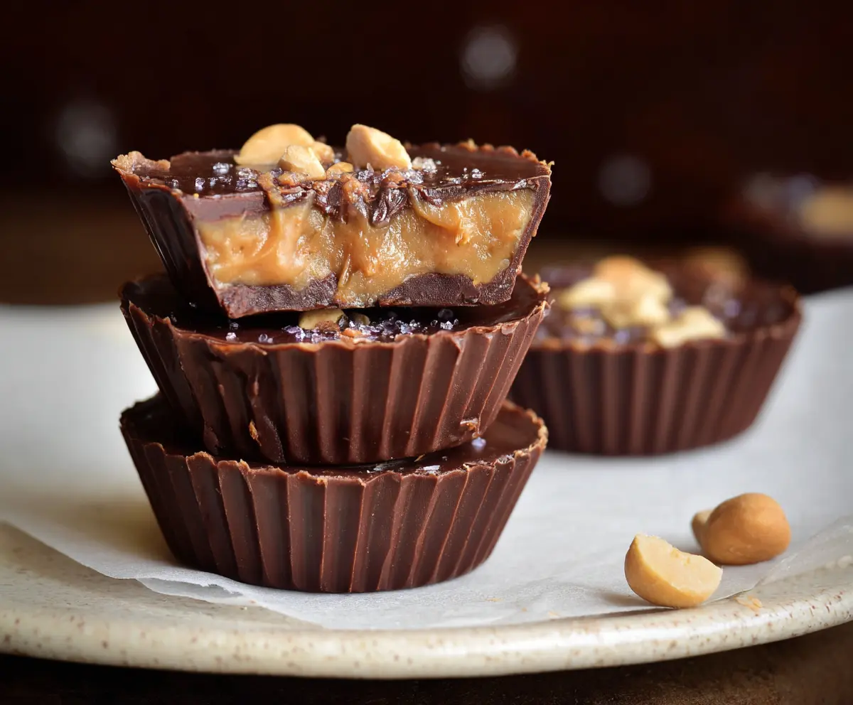Once they are set, carefully remove the cups from the molds and peel off the liners if you used them. Sprinkle a pinch of flaky sea salt on top of each cup for that sweet and salty balance.