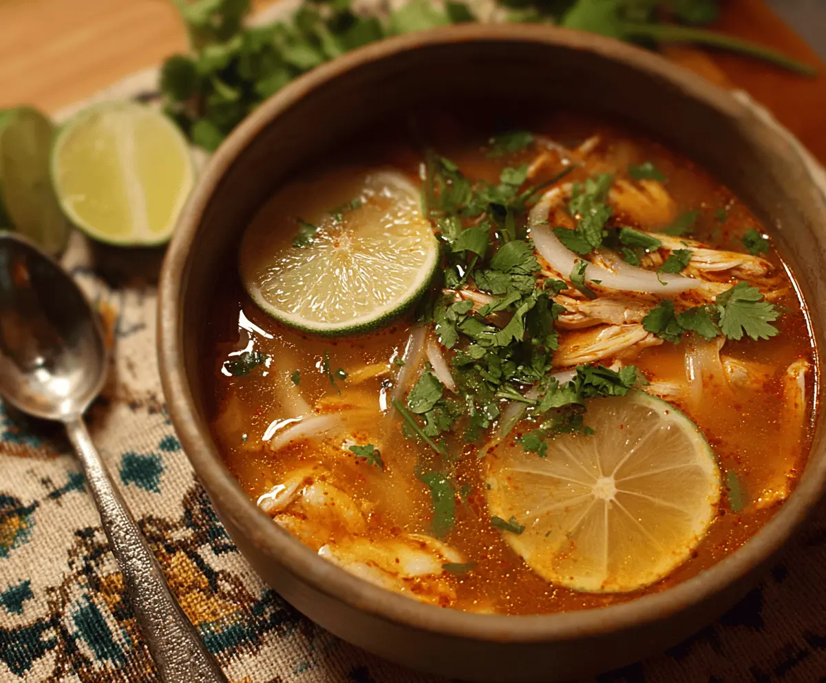 Enjoy your homemade Sopa de Lima, bursting with vibrant flavors and warmth!