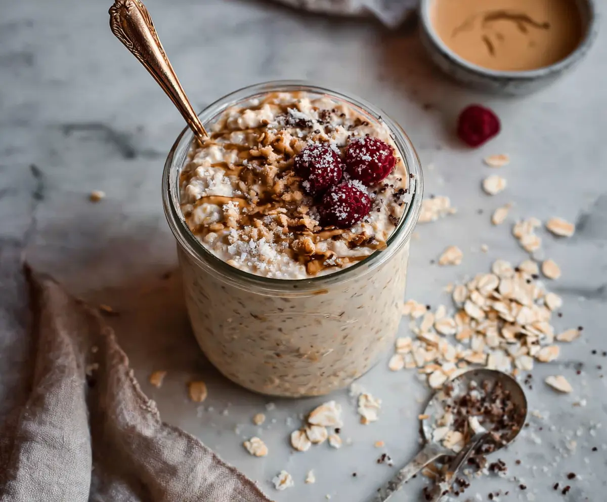 Mix everything in a jar, pop it in the fridge, and boom—breakfast is ready when you are! I love adding some sprinkles on top for a fun touch. 🍪✨