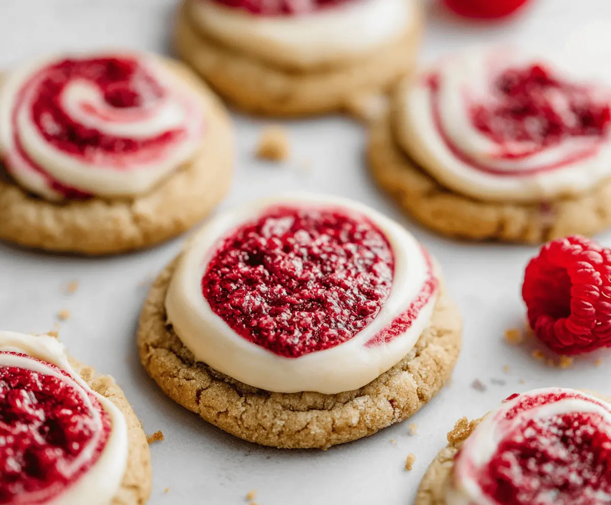 These cookies bring a soft, moist texture with a delightful tanginess from the cheesecake and bright, fruity raspberry swirls that are sure to wow friends and family alike!