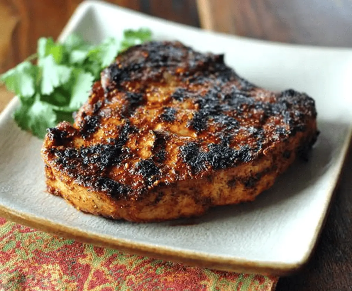 Remove the pork chops from the skillet and let them rest for about 3-5 minutes. This step is important as it allows the juices to redistribute. Once rested, garnish with freshly chopped cilantro and serve with lime wedges on the side for a zesty squeeze.