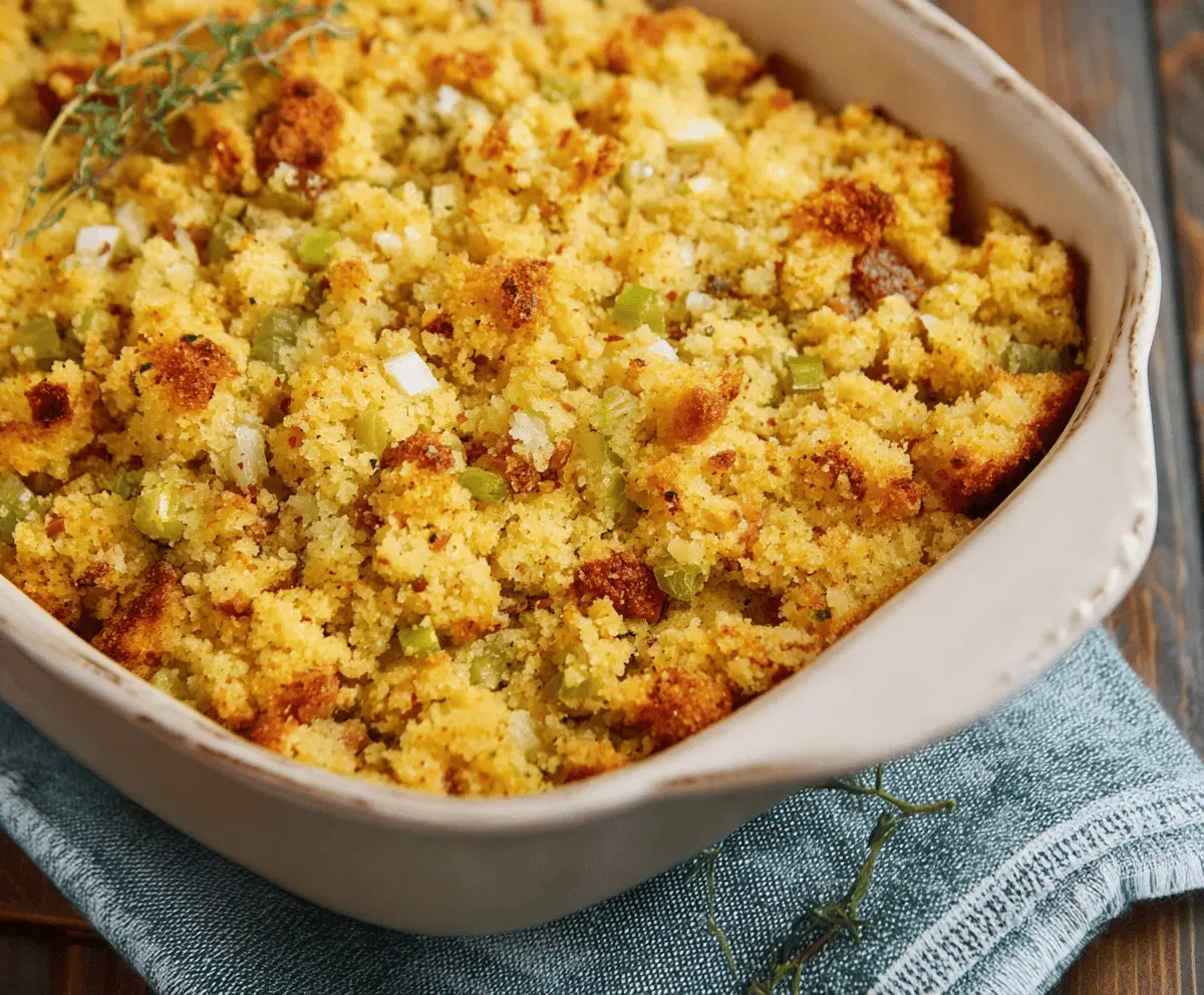 Allow the dressing to cool slightly before serving. It’s wonderful paired with roasted turkey and gravy, and perfect for holiday feasts!