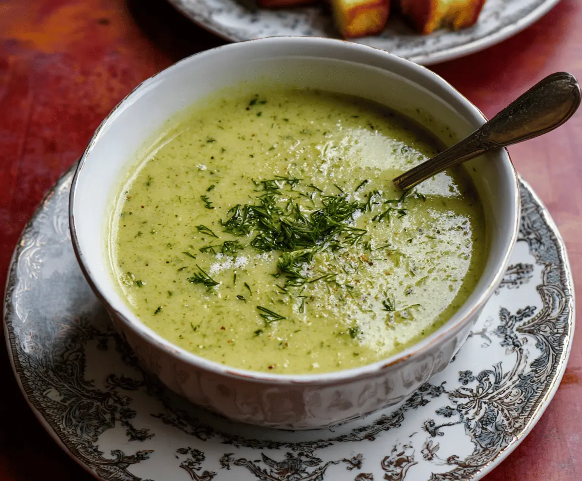 Serve your warm zucchini soup hot! Garnish it with fresh dill and a sprinkle of freshly ground pepper. If you like, add some crunchy croutons on the side for a delightful touch!